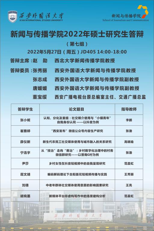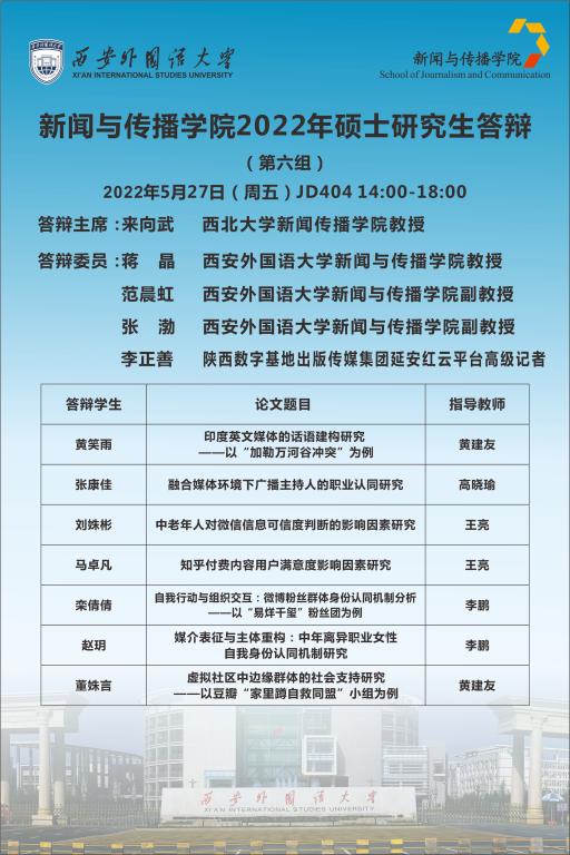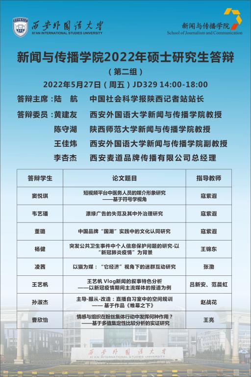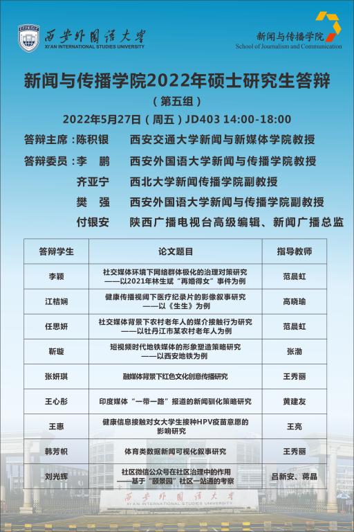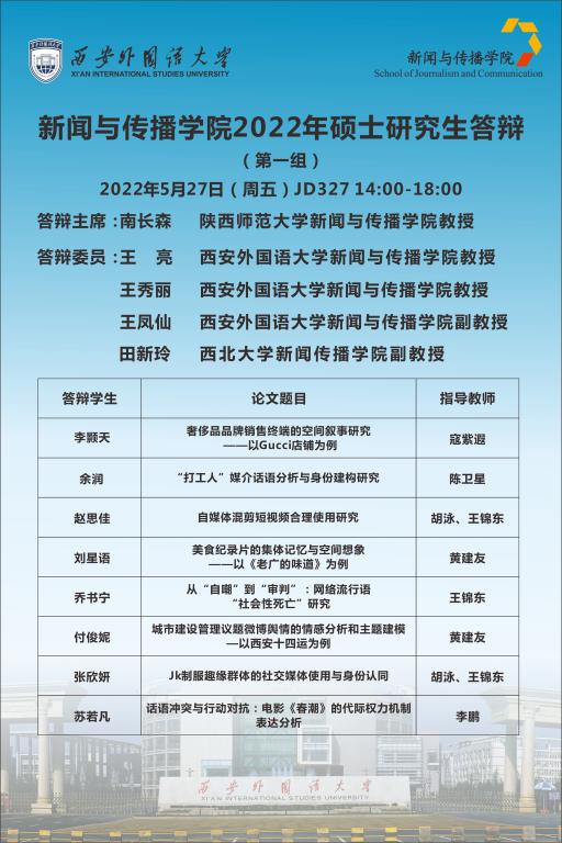 工作实际,定于2022年5月27日下午,组织2022届硕士研究生毕业答辩,具体安排如下。