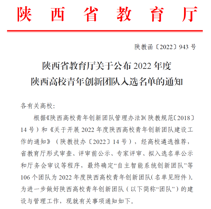 赵战花教授负责团队入选2022年度陕西高校青年创新团队