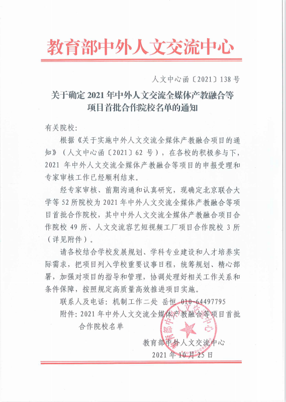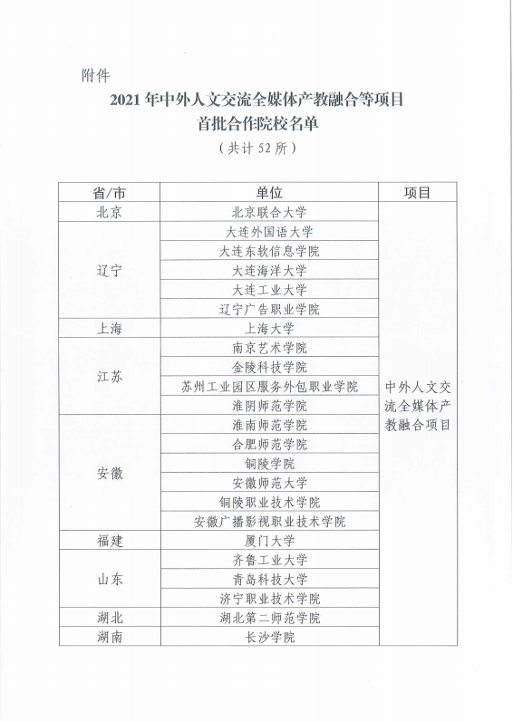 近日,教育部中外人文交流中心公布开云体育app 获批为2021年中外人文交流全媒体产教融合项目首批合作院校。