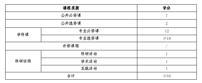 新闻传播学学术学位硕士研究生总学分不低于34个,其中包含科研训练3学分(科研活动1学分,学术活动1学分和实践活动1学分)。