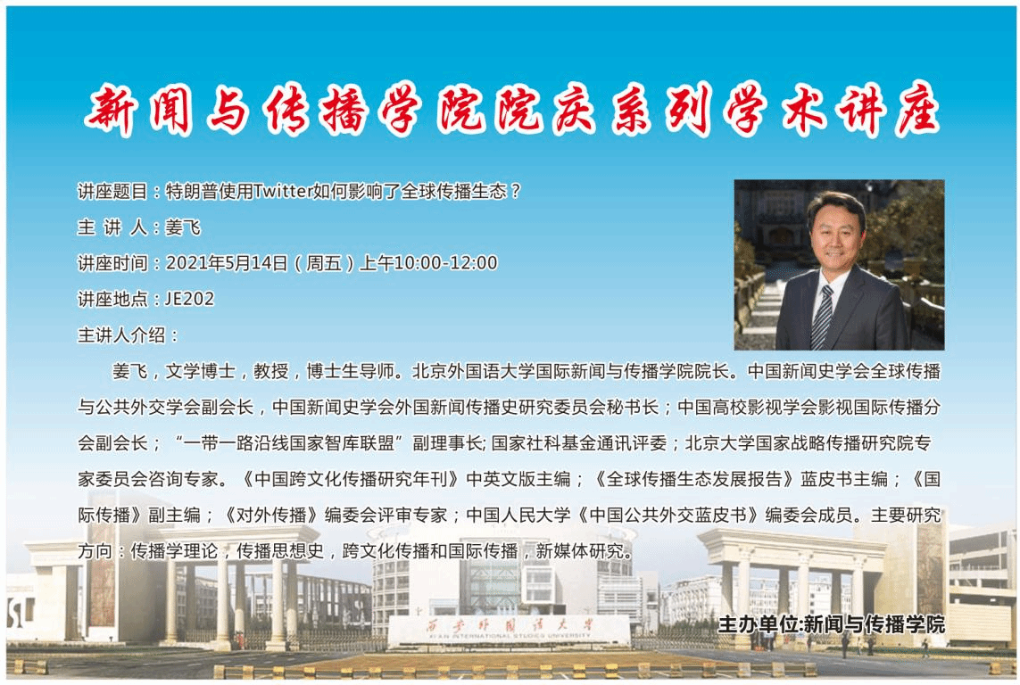 院庆系列学术讲座 | 姜飞:特朗普使用Twitter如何影响了全球传播生态?