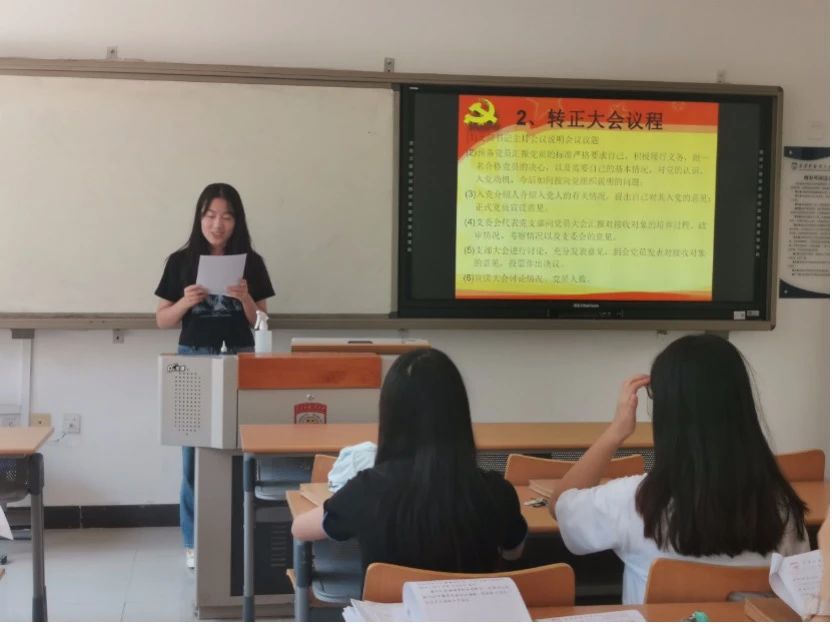 首先,预备党员王玮一、宁婷、赵思源、何蕊、焦婧妍、李一凡、许锦超、田茂露等8位同志分别汇报了自己的基本情况、对党的认识和入党动机、及预备期表现等,他们向党组织说明了目前自身存在的问题以及今后将如何按照党员标准严格要求自己,积极履行义务,做一名合格的党员。入党介绍人、培养考察人及支委会代表也分别向党员大会汇报了支委会的意见。