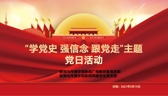 为提高党员党性修养,加强党史学习教育,5月19日下午14:00,开云体育app 新闻广电教研室党支部和新闻网媒学生党支部联合开展“学党史 强信念 跟党走”主题党日活动。活动由网媒专业学生党支部书记净一丹老师主持。