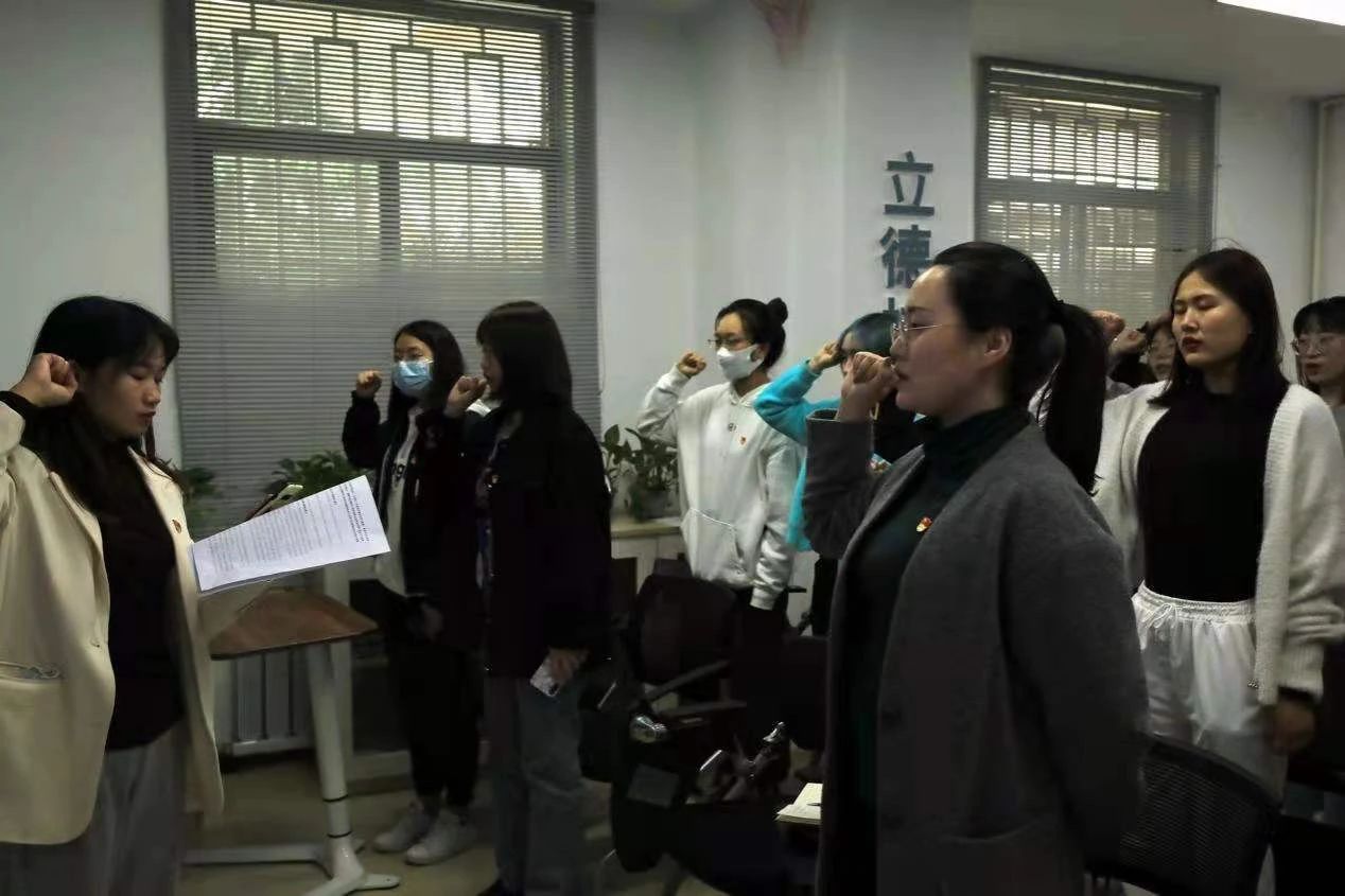 会议伊始,尹莎首先带领全体党员同志重温了入党誓词,并带领全体党员一同学习了习近平总书记在党史学习教育动员大会上的讲话。尹莎号召全体学生党员要主动学习领悟总书记的重要讲话精神,高标准高质量扎实开展党史学习教育,从党史中不断汲取智慧力量,迎接中国共产党成立100周年。