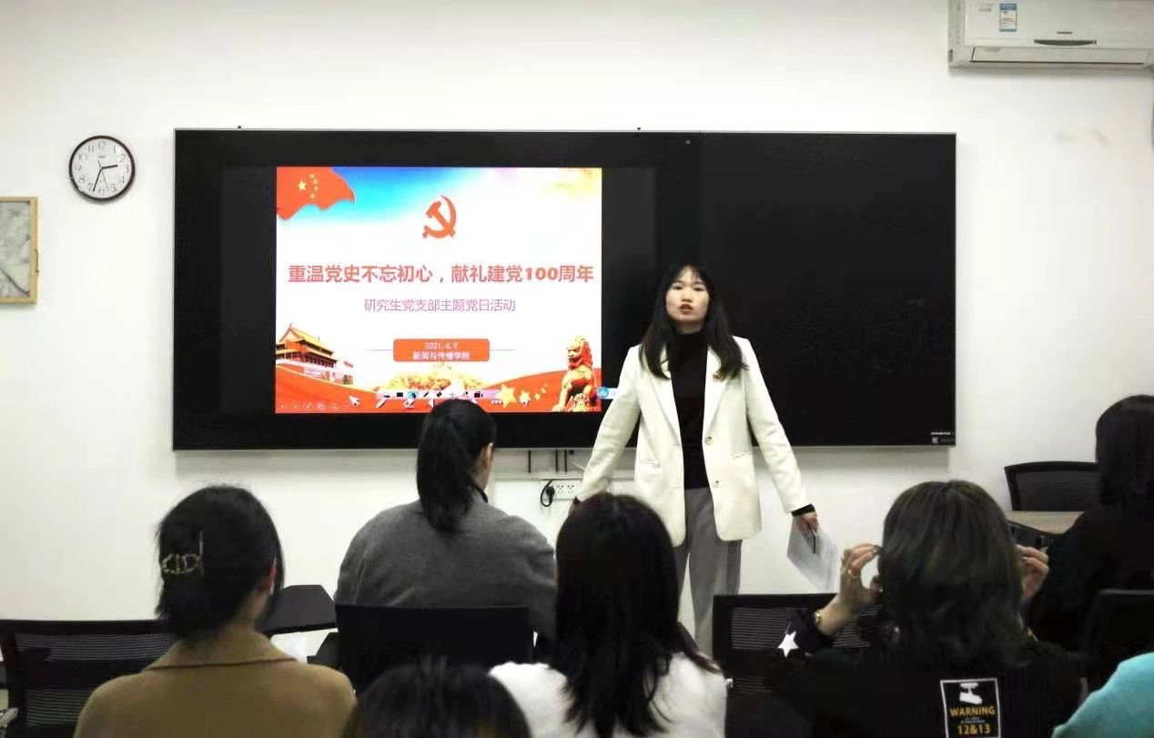 为深入学习贯彻习近平总书记在党史学习教育动员大会上的重要讲话精神,4月9日下午,研究生党支部在学生公寓学生干部工作站开展了“重温党史不忘初心,献礼建党100周年”主题党日活动,会议由党支部副书记尹莎主持。