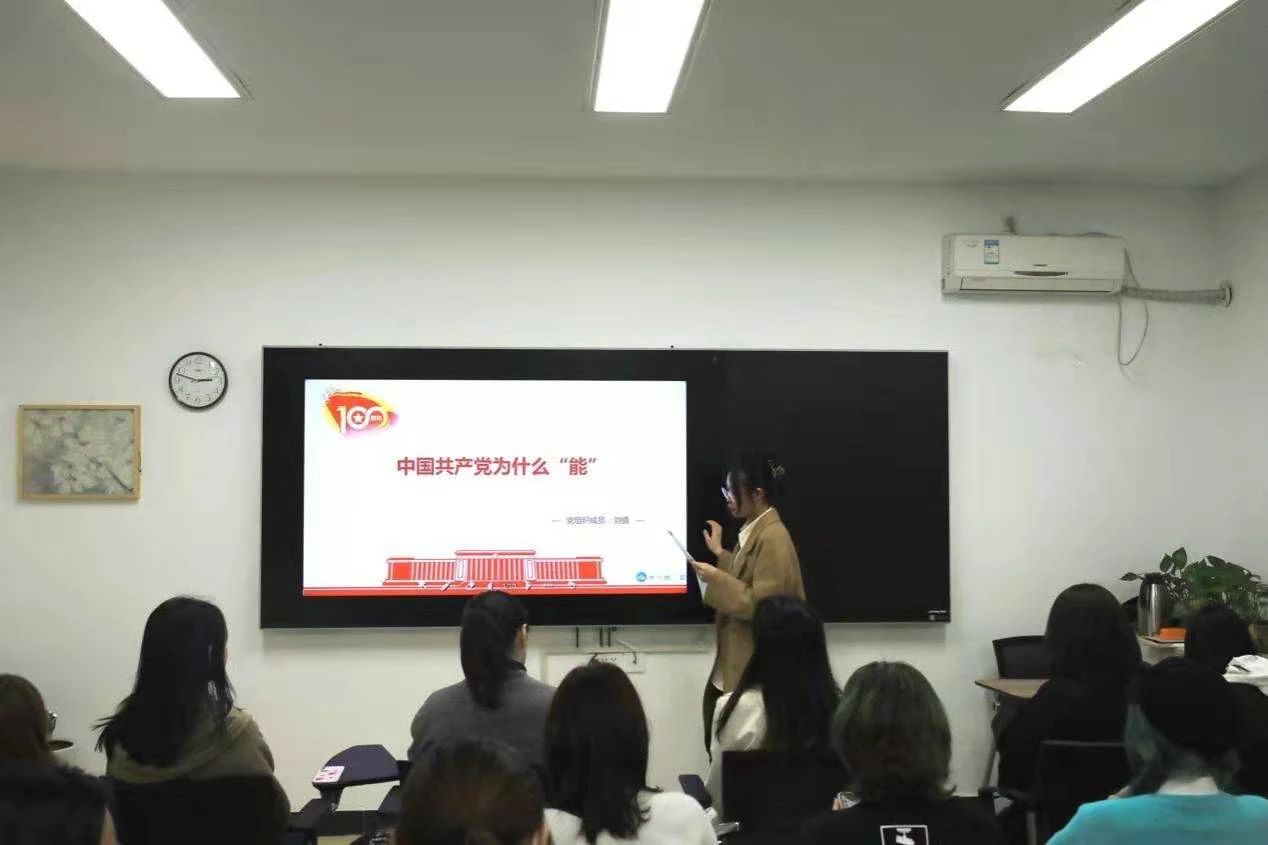 栾倩倩、刘倩、曹欣怡三位同志分别以“中国共产党为什么‘能’”、“马克思主义为什么‘行’”、“中国特色社会主义为什么‘好’”三个主题进行学习分享。随后全体学生党员进行了热烈的讨论,并简述了自己的党史学习计划。通过交流研讨,全体学生党员深刻认识到了中国共产党先进的政治属性、崇高的政治理想、高尚的政治追求、纯洁的政治品质。