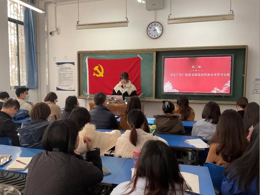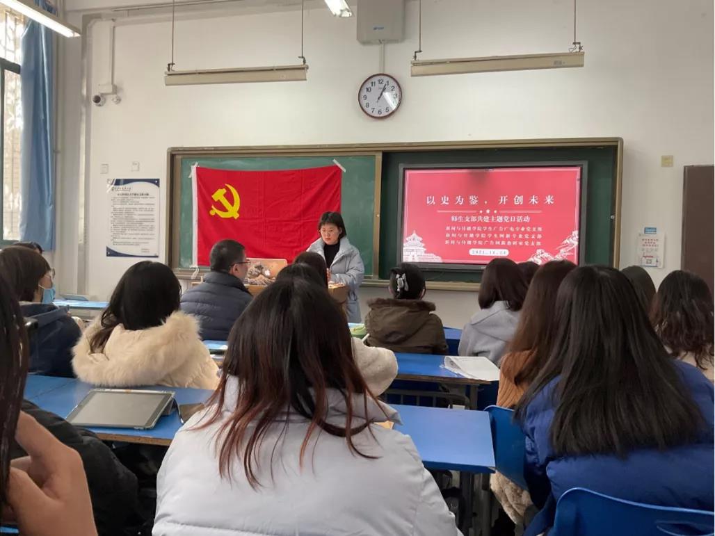 11月24日下午13:00,开云体育app 广告网新教研室党支部与学生广告广电专业党支部、学生网新专业党支部于JF116召开“以史为鉴,创造未来”主题党日活动。本次会议由学生网新专业党支部书记净一丹老师主持。
