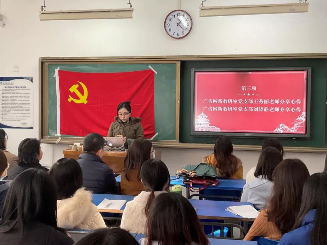广告网新教研室党支部王秀丽老师、刘晓静老师针对本次支部共建活动发表了自己的感想。党的十九届六中全会是我们党站在“两个一百年”奋斗目标历史交汇点召开的一次十分重要的会议。全会就坚持和完善中国特色社会主义制度、推进国家治理体系和治理能力现代化进行专题研究,作出了全面部署安排,这对我们党和国家事业的兴旺发达、长治久安具有里程碑的意义。面对前所未有的宏阔课题,认清历史方位,把握历史规律,决议领航定向的指引意义不言而喻。作为科研教育工作者,我们应该明白自己的使命,用课程讲好中国故事,培育新人,结合时代的使命,昂扬奋进。正如全会所指出的,“从党的百年奋斗中看清楚过去我们为什么能够成功、弄明白未来我们怎样才能继续成功,从而更加坚定、更加自觉地践行初心使命,在新时代更好坚持和发展中国特色社会主义”。以历史远观未来,百年大党始终坚持向历史寻经验,向历史求规律,才得以创造“地球上最大的政治奇迹”。过往百年已是风雨兼程,下个百年恰是风华正茂。如何走好“赶考路”,答案蕴于历史,寄于未来。