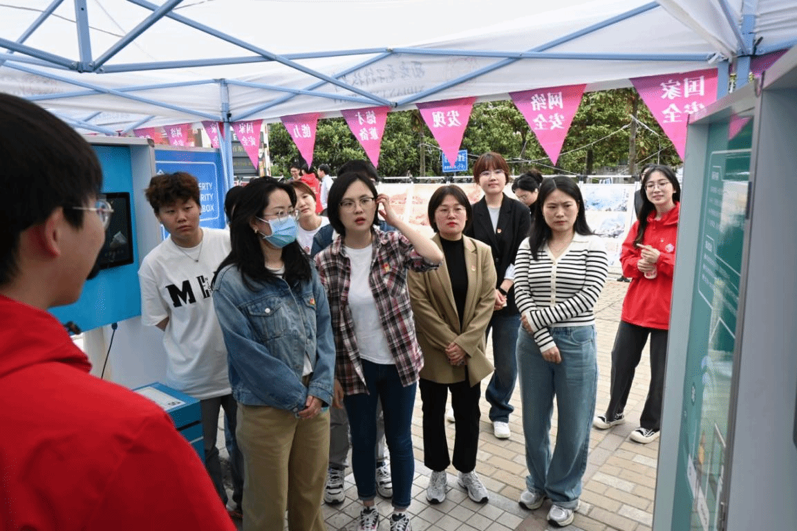 在知识科普区,志愿者讲解员为师生们介绍了总体国家安全观的基本概念、内涵、主要类型以及反邪教科普知识。在体验互动区,大家亲身体验了恶意WiFi、虚假邮件等网络安全风险模拟场景;同时了解了生活中应用较多的安全产品和设备。在竞赛宣传区,学生讲解员为师生们介绍了近年来信息安全专业相关的主要竞赛和科研成果。