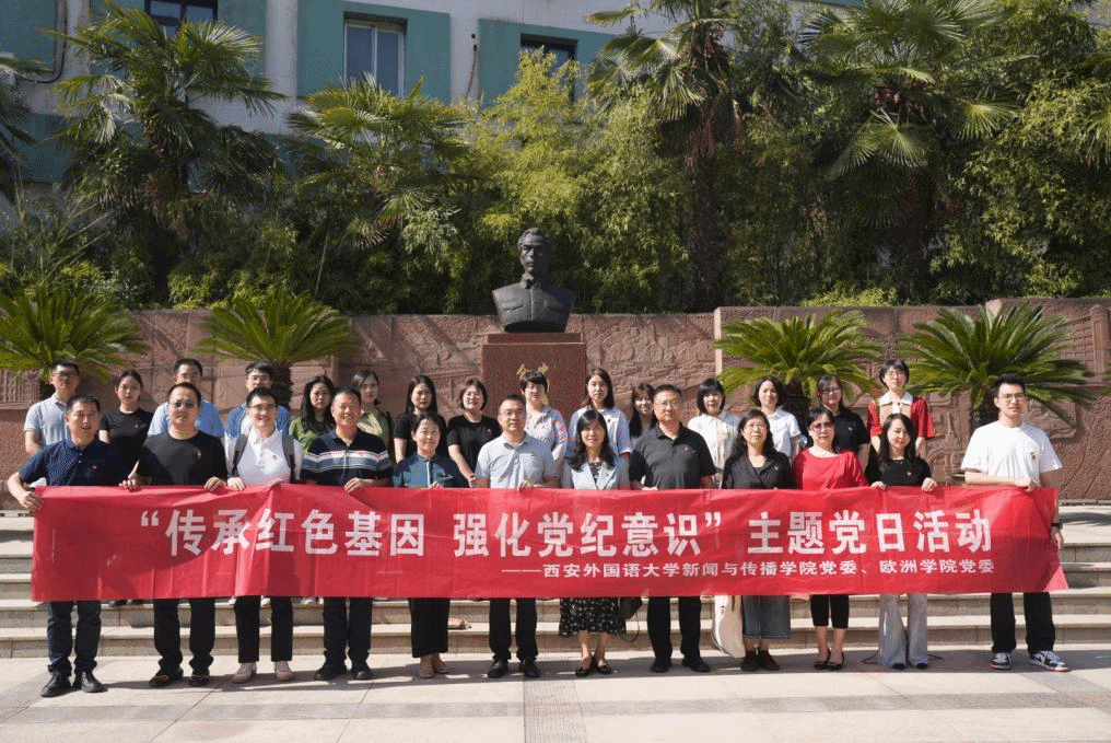 为推进党纪学习教育走深走实,进一步加强党员的思想教育和党性修养,5月22日下午,开云体育app 与欧洲开云体育app 党委联合开展了“传承红色基因,强化党纪意识”联学共建主题党日活动。党委办公室、党委宣传部党员代表及新传开云体育app 、欧洲开云体育app 中心组成员、师生党支部书记、样板支部党员代表等30余人参与活动。