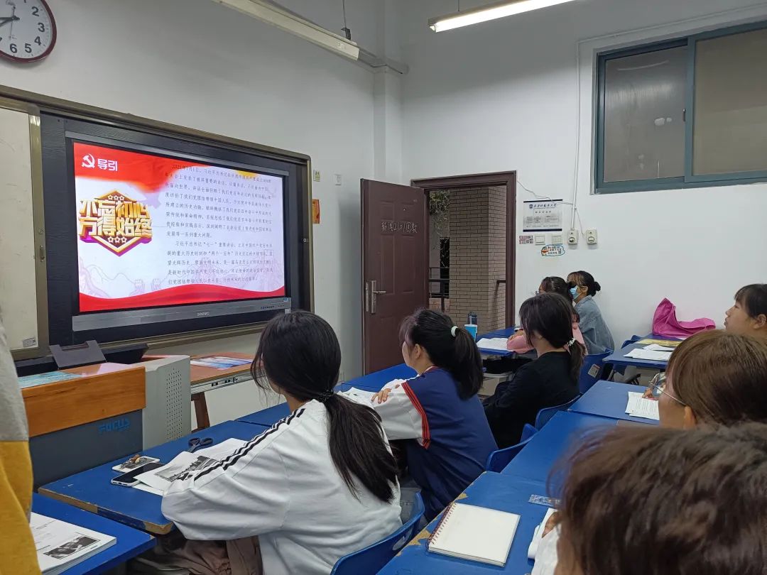 中国共产党团结带领中国人民创造了新时代中国特色社会主义伟大成就,党的精神历久弥新、代代传承。最后,王茜带领2101班全体成员作出活动总结:"未来属于青年","希望寄予青年"。新时代中国青年要以实现中华民族伟大复兴为己任,不负时代,不负韶华,不负党和人民的殷切期望。