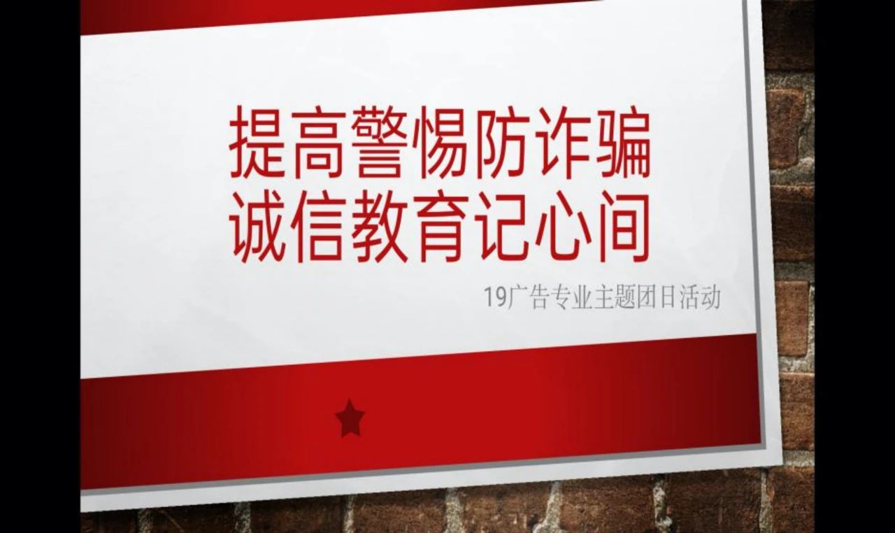 为了提高学生们对诈骗的警觉性,增强学生们自我防范的意识,于6月24日19:00开云体育app 19级广告专业学生召开了以“提高警惕防诈骗,诚信教育记心间”为主题的班会。本次团日活动由赵杰欣同学主持。