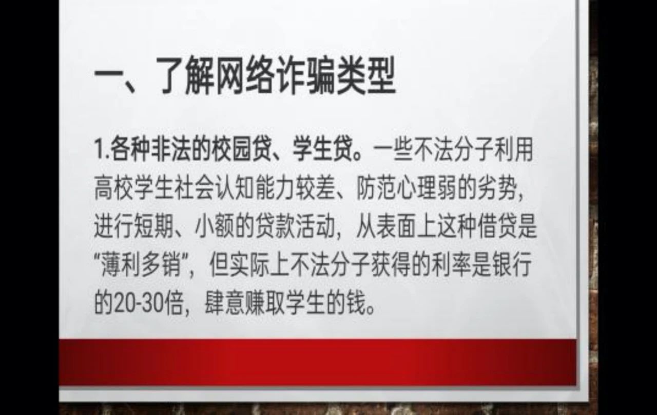 会议伊始,由赵杰欣同学先带领全体同学认识到提高防骗意识的重要性,他讲到现在诈骗的手段越来越高明,形式越来越多样化,我们身边受骗的案例有很多,这就需要我们增强对诈骗的防范意识。接下来又带着我们学习了一些常见的诈骗类型,强调了我们要学会辨别诈骗行为,增强识别诈骗的能力。然后又再一次强调要增强和提高安全防范的意识,要时刻保持警惕。
