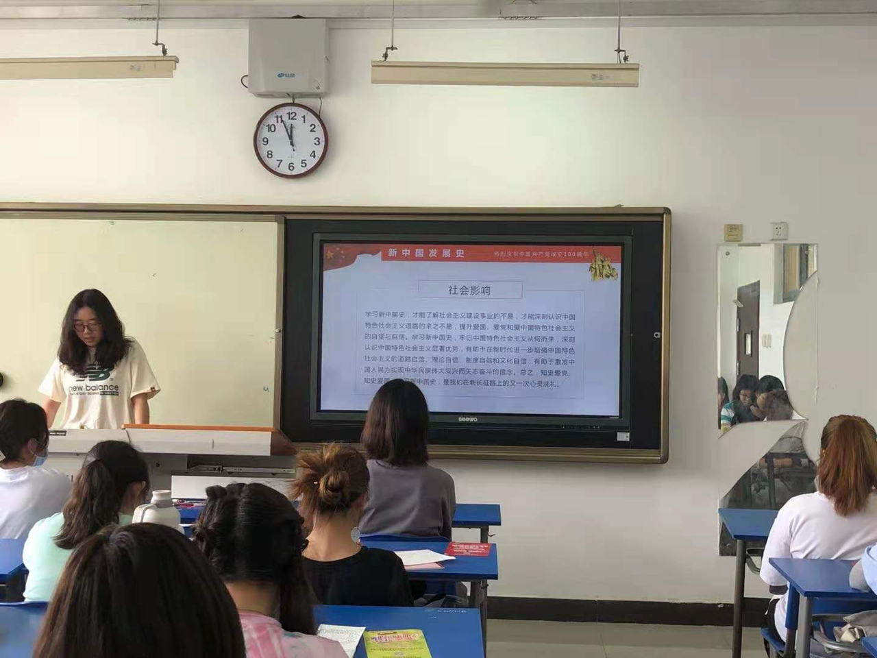 知史爱党、知史爱国。新闻2002班全体成员在JD328开展“学习新中国史,不忘初心、牢记使命”主题团日活动。本次大会由团支书蔡嘉宁主持。
