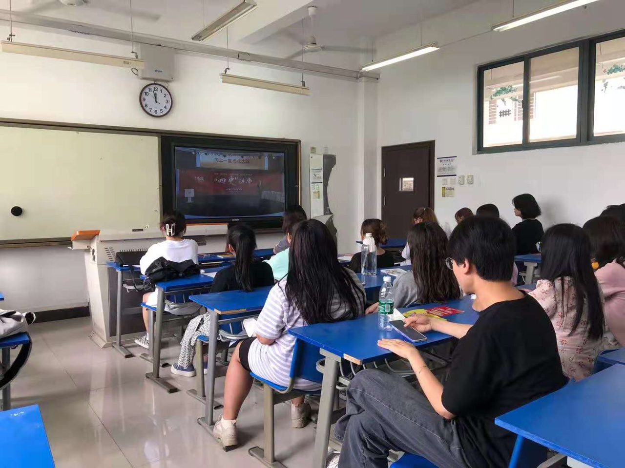 全班同学还一起观看了大学生同上“四史”的思政大课。通过观看视频,大家都感受到了社会主义建设事业的不易,深刻认识中国特色社会主义道路的来之不易,提升同学们爱国、爱党和爱中国特色社会主义的自觉与自信。