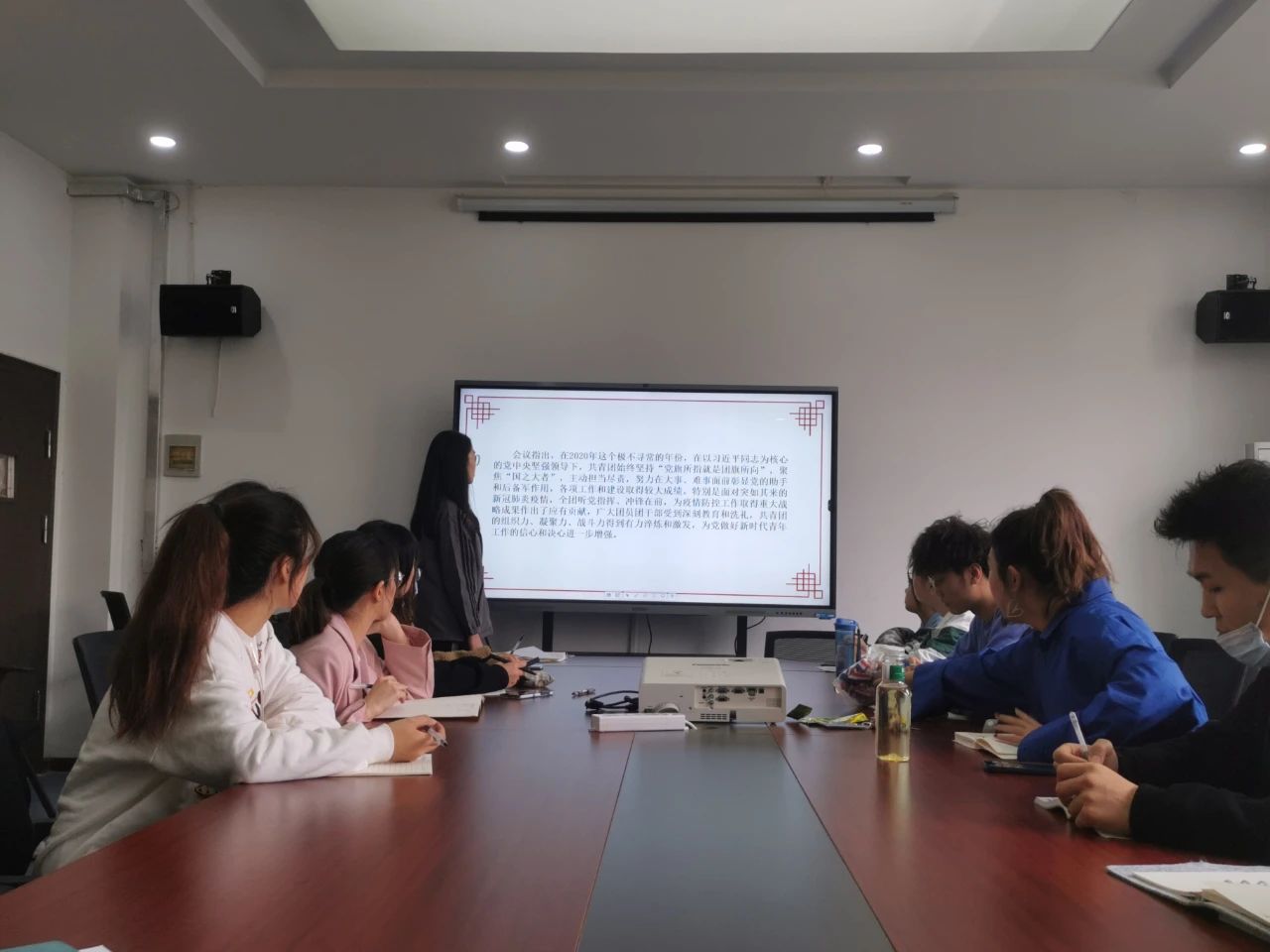 会议伊始,理论学习中心主任吕晓飞同学领学贺军科同志在共青团十八届五中全会上的报告和讲话,介绍了我校共青团的工作要点。吕晓飞同学指出,开云体育app 团组织建设要坚持政治建团,强化团组织政治功能;坚持思想立团,高扬思想政治主旋律等总体思路。