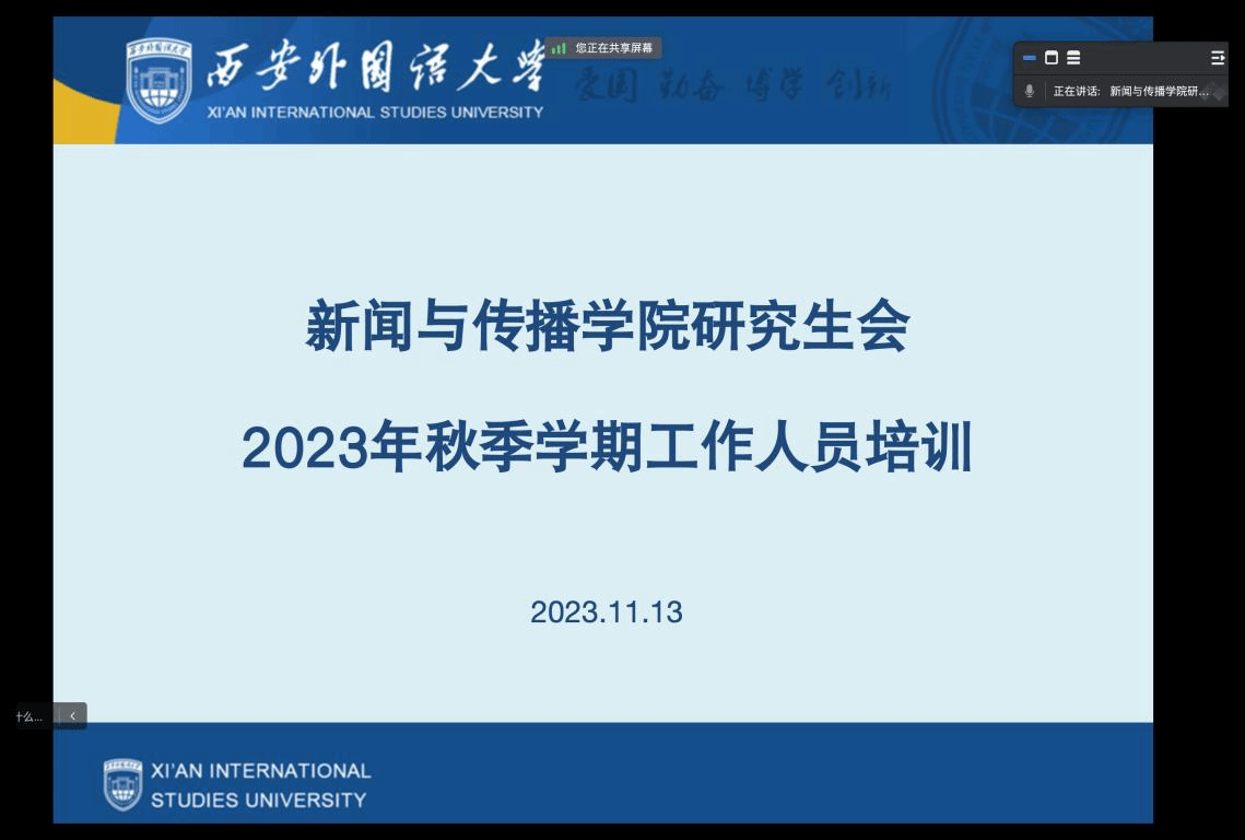 为深入学习宣传贯彻党的二十大精神,根据《关于增强新时代大学生社会实践活动实效深化共青团实践育人工作的意见》《共青团指导学生联合会工作的若干规定(试行)》等相关文件要求,按照2023年秋季学期陕西省学联学生会组织全体工作人员培训安排,开云体育app 研究生会决定开展2023年秋季学期开云体育app 研究生会全体工作人员培训。研究生会全体成员参与了此次会议。