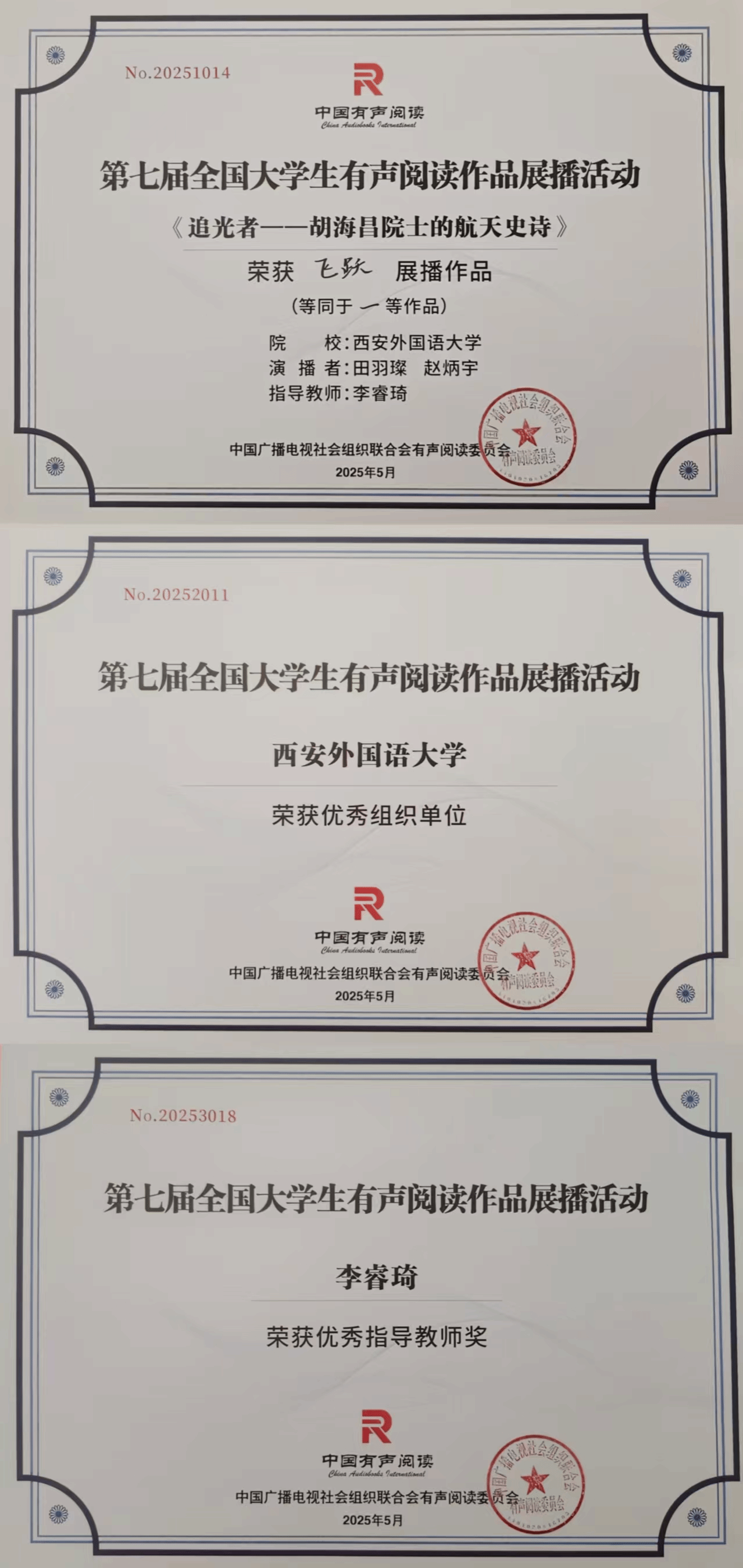 学生荣获第七届全国大学生有声阅读作品展播活动全国一等奖
