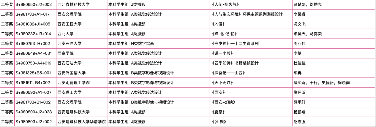 (部分获奖名单)