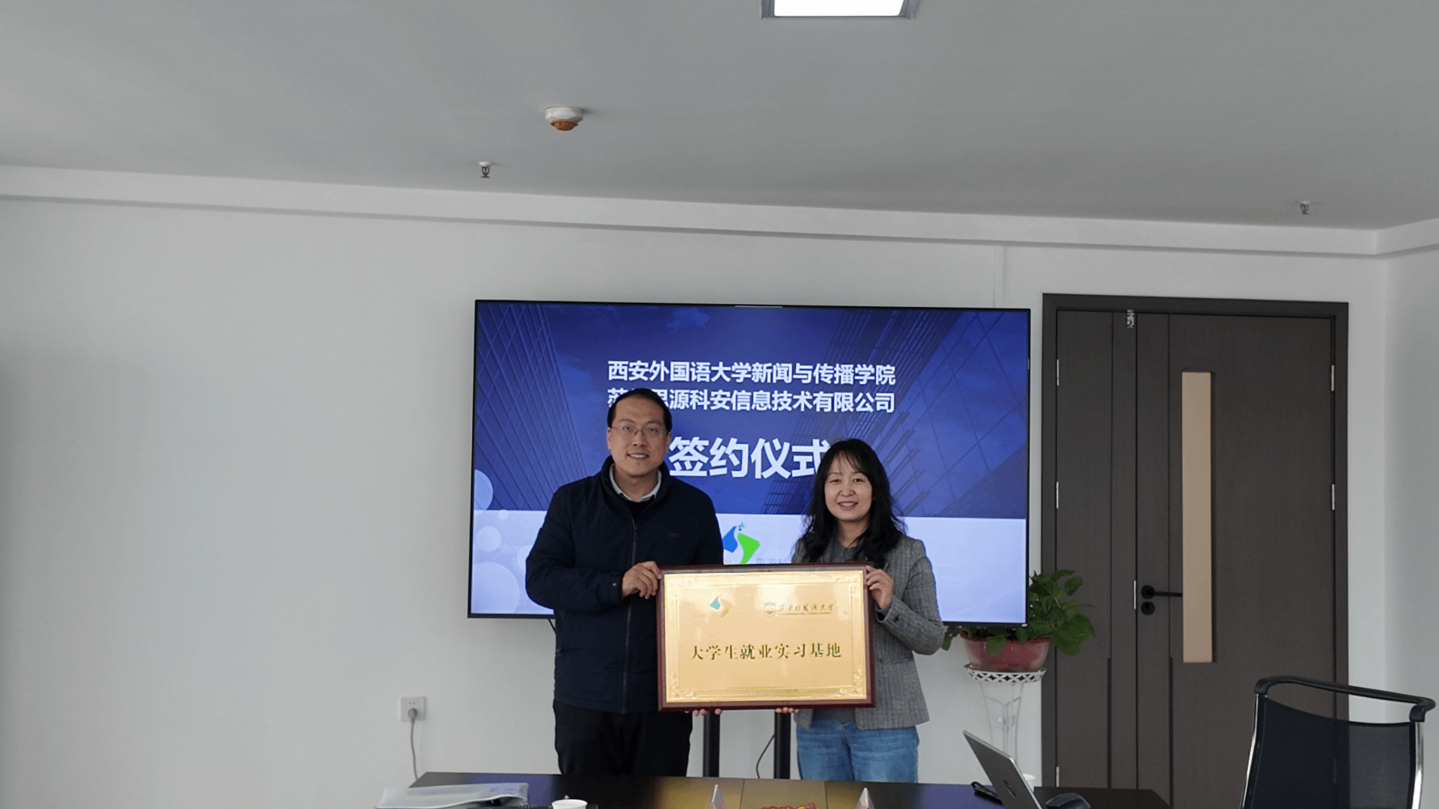 随后,双方举行就业实习基地签约及揭牌仪式。党委副书记刘鹏博与罗照华副总经理代表双方签署协议,张中旺书记与罗照华副总经理共同为“开云体育app 就业实习基地”揭牌。