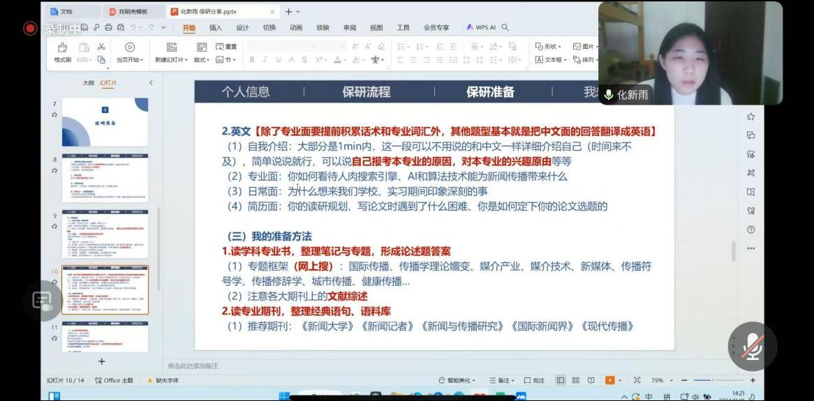在升学深造模块,参与分享的校友有毕业后前往英国威斯敏斯特大学攻读硕士学位的2020届毕业生张雅音;目前在马来亚大学攻读博士学位,并就职于中国驻马来西亚大使馆的2020届毕业生祝一凡。她们在分享中建议同学们注重本科阶段的多元化发展,积极了解国内外传媒类专业的发展情况,努力提高语言水平,拓宽视野,为顺利申请深造机会奠定基础。