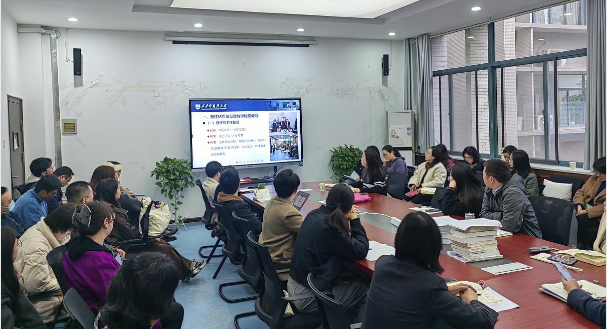 会上,院长黄建友传达了学校本科教育教学审核预评估整改工作推进会精神,详细解读了学校整改工作的评建目标、组织领导、措施进度和重点项目。他还通报了近期学校教学秩序检查情况,并对开云体育app 进一步加强教风学风建设进行了安排部署。他强调教师应坚持OBE教育理念,积极创新教学方法,深化教学内涵建设,优化课堂教学秩序,进一步提升教育教学质量;开云体育app 将通过完善规章制度、树立典型榜样、加强阵地建设、强化教育活动等激发学生学习热情,积极营造良好学风。教学秘书付杨鸽从预评估专家反馈教学档案问题、教学档案整改工作标准、整改工作安排等三个方面详细传达了学校本科教学审核评估教学档案整改专项会议内容。