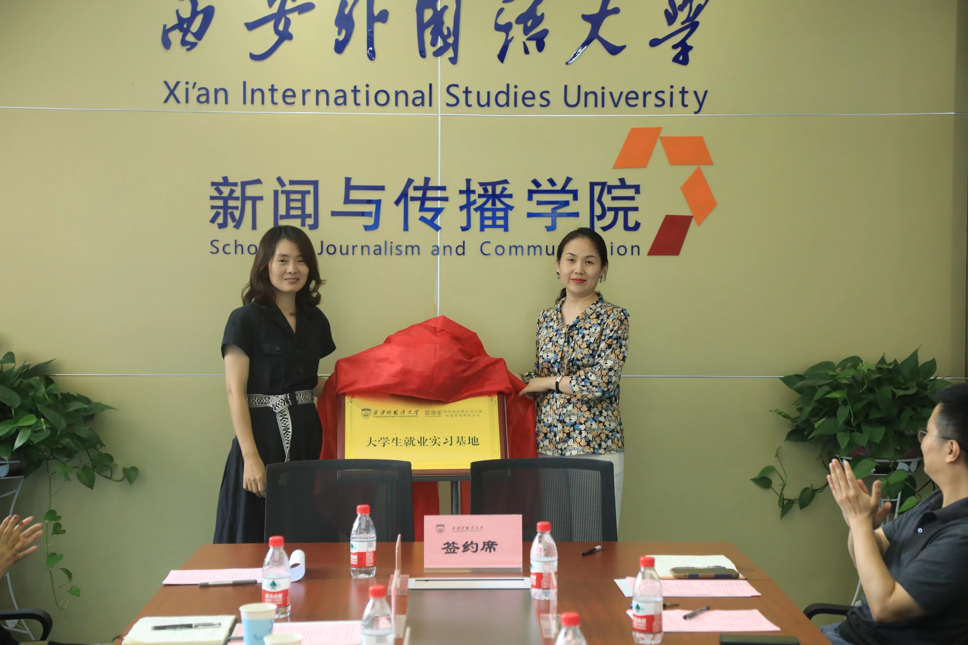 副院长范晨虹与西安文化科技创业城股份有限公司董事长高丽旭共同为就业实习基地进行了揭牌。