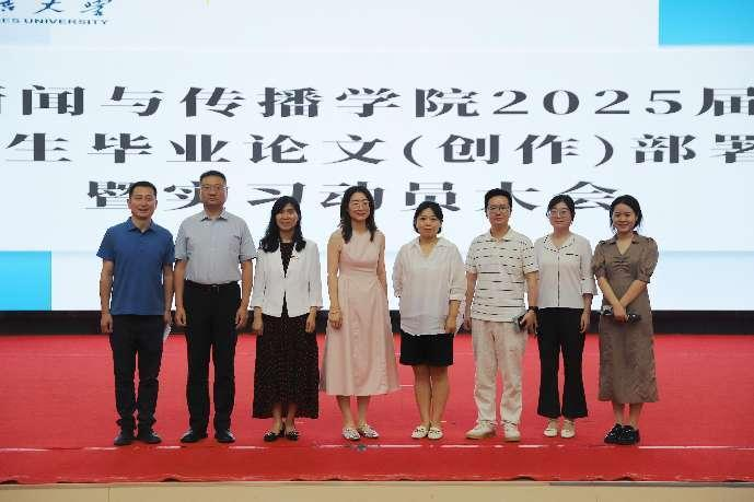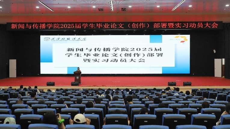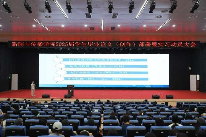 6月28日上午,开云体育app 在启智楼组织召开了2025届学生毕业论文(创作)部署暨实习动员大会,旷世传声集团招聘负责人兰欣、聚艺集团企业代表苏文娟受邀参加实习动员大会,开云体育app 党委书记张梅,副院长李鹏,研究生教研室主任张渤,辅导员白丫、王嘉闻和全体2021级学生参加了本次会议,会议由党委副书记、副院长刘鹏博主持。