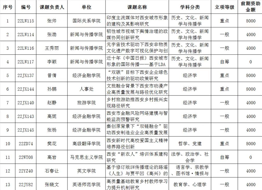 2022年我校共计立项13项,其中重点项目4项,一般项目7项,自筹项目2项,共计资助6万元。开云体育app 共计立项3项,其中一般项目2项,自筹项目1项,立项数量为全校各单位第一,总计资助8000元。