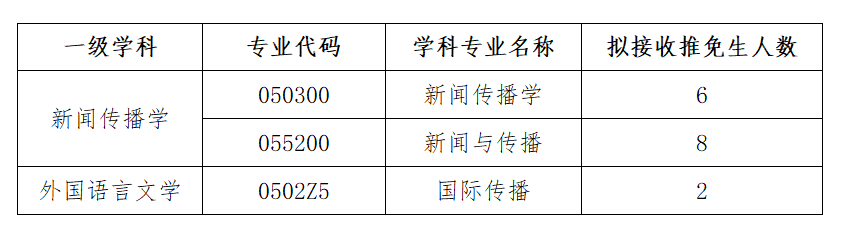 根据《西安外国语大学2024年接收优秀应届本科毕业生免试攻读研究生(含直博生)简章》(详见链接//yzw.kaiyuntiyuapp.net/info/1080/3023.htm),确定开云体育app 以下专业接收推免生: