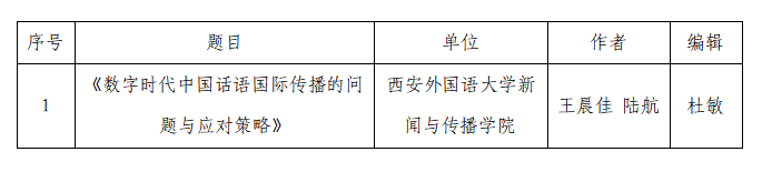 报送第33届中国新闻奖参评作品公示:《数字时代中国话语国际传播的问题与应对策略》