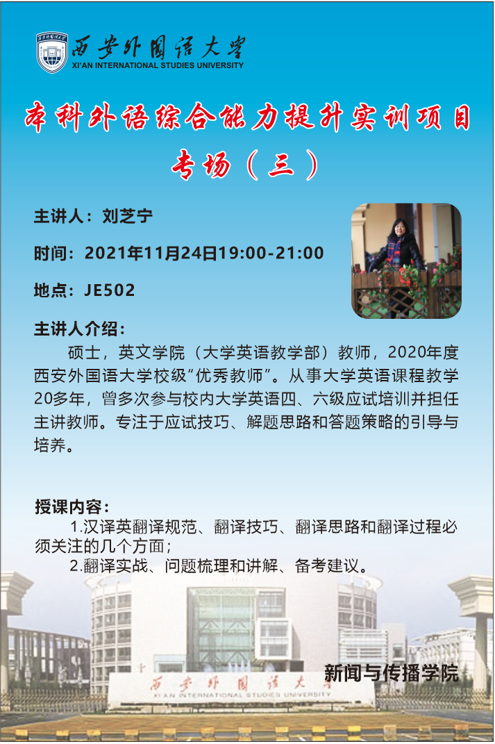 XISU新传·讲座预告 | 本科外语综合能力提升实训项目专场(三)
