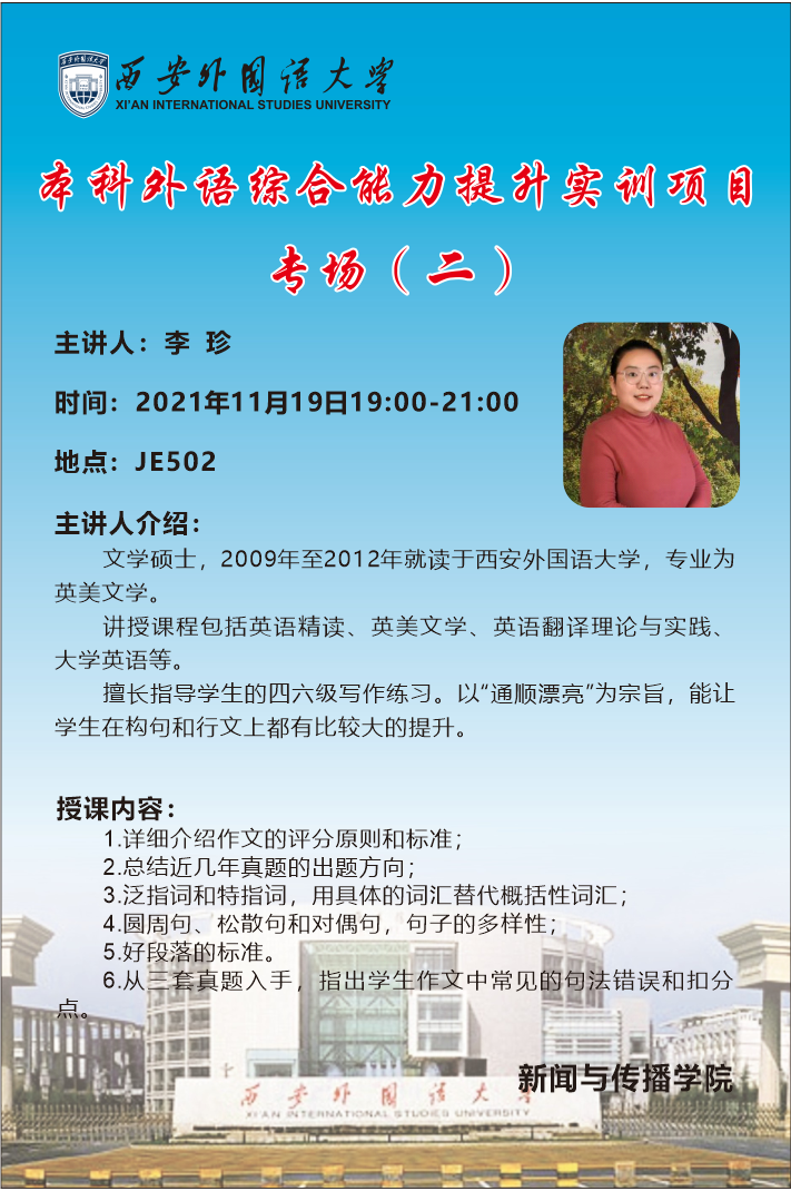 XISU新传·讲座预告 | 本科外语综合能力提升实训项目专场(二)